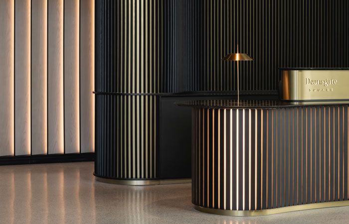 Deansgate Square Reception, Manchester by Renaker. Wayfinding by f.r.a.