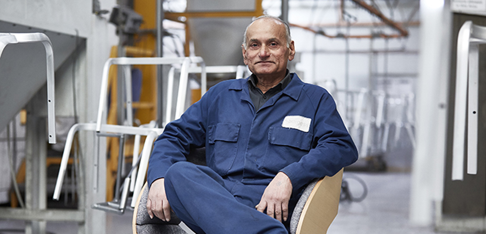“My first memory of working at Burgess is unloading chairs from a lorry on what was a very cold day. It’s a wonderful workplace, I’m so delighted to have my own chair.” – Viram Khunti, Burgess Furniture Paintline Operator.