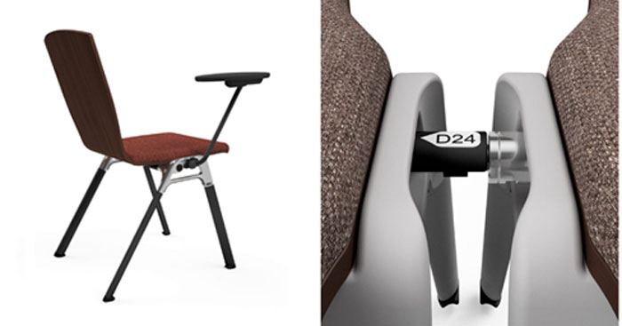 The unique oval extrusion used on the legs transitions from the castings down to the feet which assist stacking without detracting from the clean lines. In addition the castings house the retractable linking and detachable writing tablet when specified.