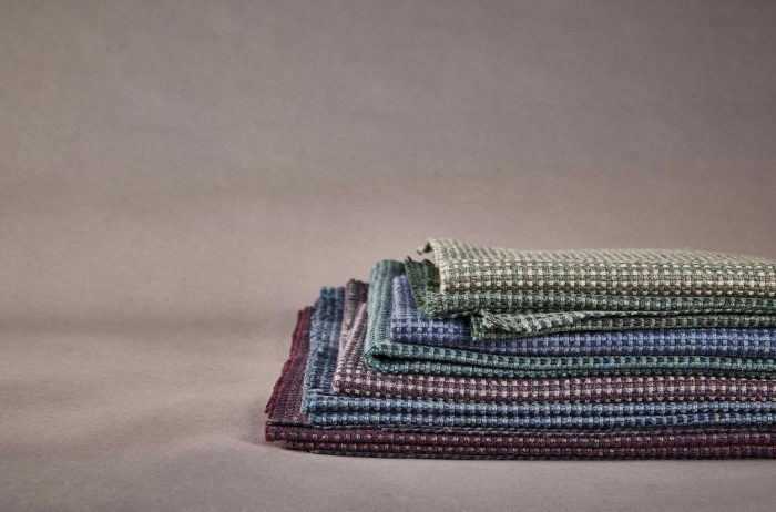 The latest innovation to emerge from the Camira Group’s advanced textile reprocessing capability, iinouiio, ReSKU 2.0 has a naturally homespun aesthetic, due to its hopsack weave construction. The fabric is created by sorting waste woollen fibres into colour groups before being mechanically pulled apart, shredded, and stripped back into fibre form. Coloured flax is then added to the recipe to achieve 24 charming colourways.