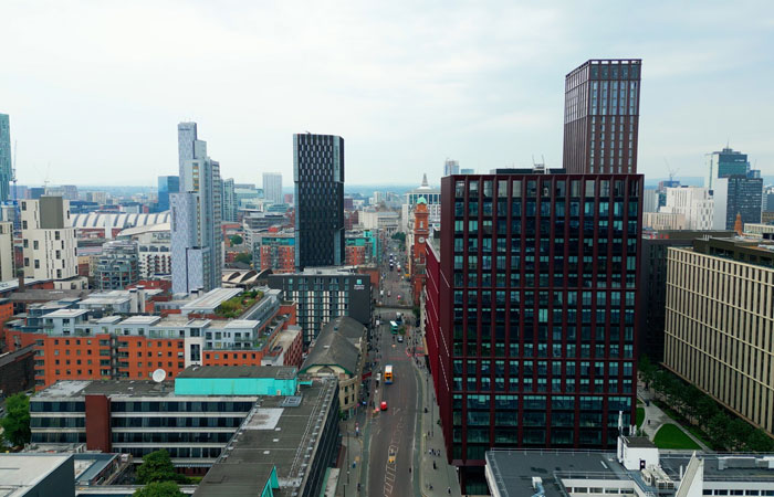Oxford Rd, home to Manchester Metropolitan Uni and the SpaceInvader studio