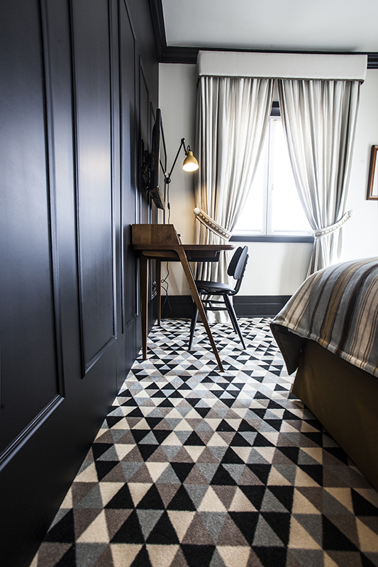 Dark tones ranging from blue, green and purple are the preferred colours for creating dark and luxurious spaces. This seems to be a growing trend, and carpets are often seen in monochrome dark colours to reinforce the mood.