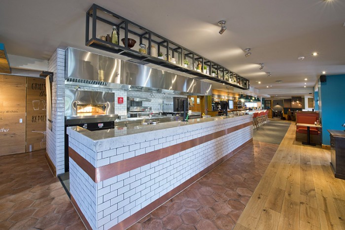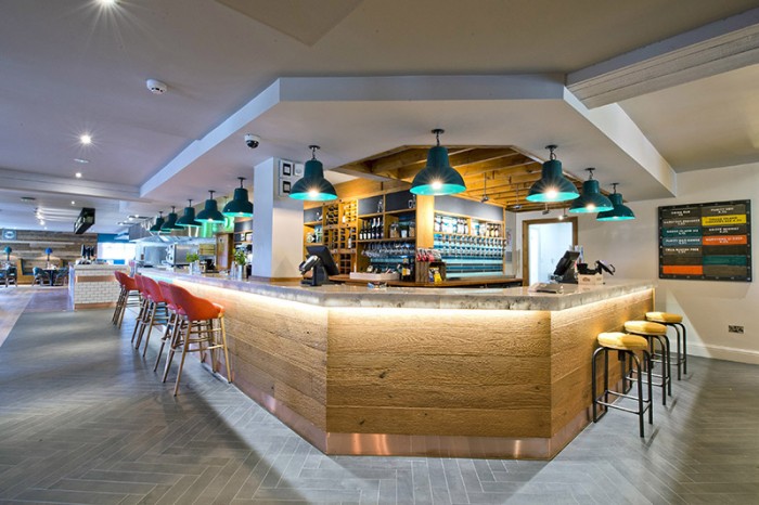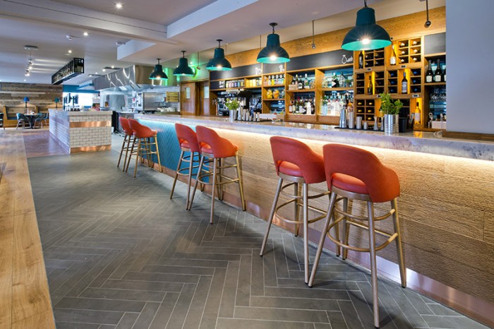 Described by Whitbread as ‘an informal, all day restaurant, with the relaxed vibe and affordability of a pub’ the new space is now a striking new eatery that has replaced the previous site. Speaking of the renovation, Simon Tyas, director of JMDA said ‘Much of the original interior was stripped out. The kitchen and back of house areas were retained in the same location, but the kitchen was converted into a theatre-style, extending into the restaurant and including a bistro oven, so diners can see their food being prepared.’
