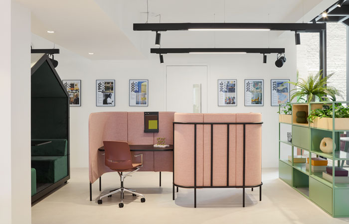 The new showroom is a collaborative achievement, bringing together a team of expert partners to deliver an adaptable environment tailored to showcase KI’s diverse product range. Originally envisioned by concept architects work.place.create, the project evolved through a close partnership between KI Europe, IKON Group as main contractor, and Design with Narrative (DWN) as the design delivery partner. The result of this collaboration was the creation of a destination environment that is more than just an office and furniture showroom, but a multi-purpose environment that blends working, hospitality, education and knowledge sharing.