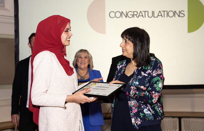 Rita Bancroft presents Aleenah Ahmed with her certificate