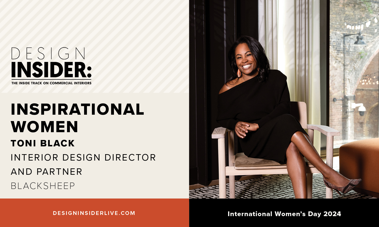 Toni Black, Interior Design Director and Partner at Blacksheep, is one of our Inspirational Women. In our conversation, we delve into how Toni interprets #InspireInclusion within the context of her work and the broader commercial interiors sector. We explore her personal experiences, the success stories that have marked her journey, and the collective strides we can make toward a more inclusive industry. Moreover, we discover the women who have inspired her and how she, in turn, serves as a beacon of inspiration for others.