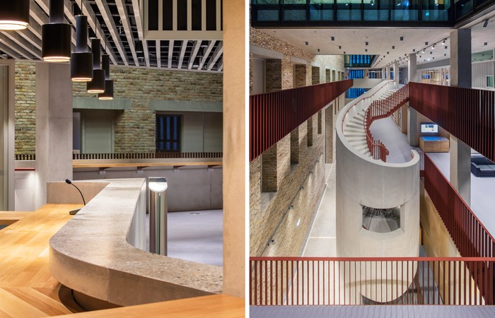 The palette of materials for the Central European University was selected by O’Donnell + Tuomey for their endurance and natural material qualities that give character to the overall appearance. Stone, timber, concrete and steel form the fabric of the internal public spaces, with bespoke furniture used throughout the building. The new facades are constructed with local limestone, designed to emphasize the geometric quality of the building and continuing the tradition of solidity and permanence of the Budapest stone architecture. O’Donnell + Tuomey tell us more about their historically important building including the success of their supplier IVANKA on being a Surface Design Awards 2018 Finalist.