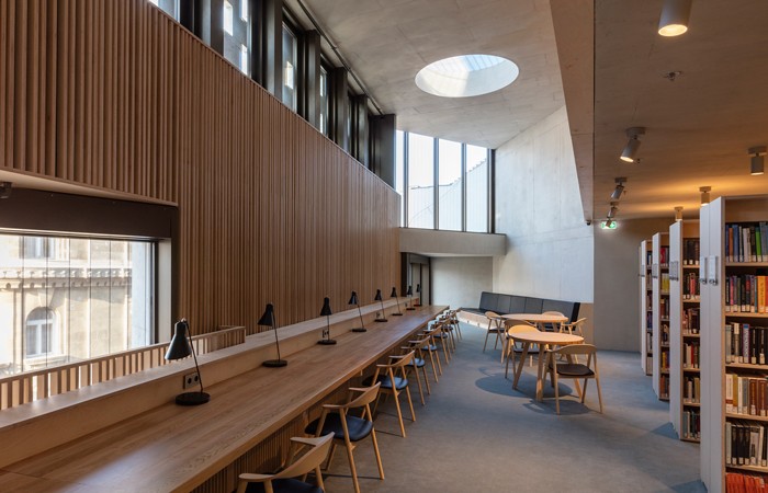 O’Donnell + Tuomey’s brief was to design a new 35,000sqm Campus on a World Heritage site in central Budapest, incorporating all the Central European University Departments and facilities. The scheme involves the radical transformation of five adjoining, previously disconnected, historic buildings and the construction of two new buildings. The project changes the relationship of the university to the city. Phase 1 provides a public face for the university, a new entrance on axis with the Danube, a library and learning café for citizens and students. The campus becomes integrated with the urban realm.