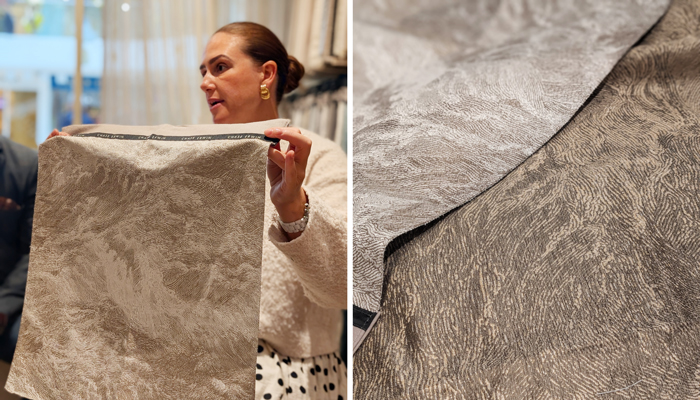 An example shared during the session illustrated this process in action. For a Monaco hotel project, a silk-rich Chase Erwin drapery fabric was reinterpreted in Trevira CS, maintaining its fluidity and texture while meeting FR standards, and achieving a 50% cost reduction. The team referred to this approach as “value engineering,” not as a compromise, but as an intelligent collaboration between design and manufacturing to deliver creative results within budget.