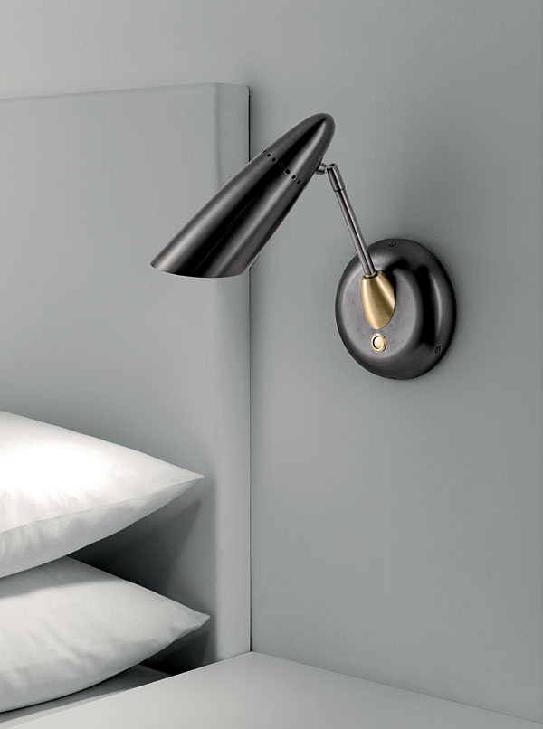 Following the latest industry trends and ultimately trying to pre-empt them is a critical part of the design process. Nobody wants to specify outdated products so we try to recognise emerging trends as early as possible and use them to inspire our collection. Take the Bullet range for example, we identified that retro styling and industrial cues were becoming big news on the interior design scene, so we designed the range based on retro styling from the 1960’s with an assortment of finish options to appeal to our international client base. To mix the wish of the guest who wants enough light and the wish of the hotelier who wants low energy costs, it had to be LED with an integral 6watt LED chipboard located behind a frosted diffuser in order to give soft light with no glare. Contract functionality means solid steel and brass construction, locking swivel joints with toothed locking key for secure arm position. The multi-swivelling head enables guests to control the position of the light whilst the weighted base houses the LED driver and ventilation holes in the head ensure that barely any warmth is emitted from the light source.