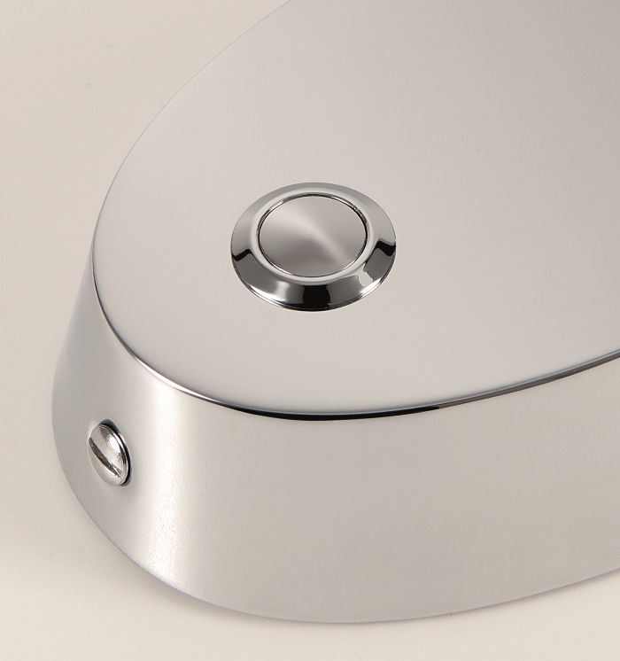 Available as part of a wider collection of desk and floor lighting, the Metro range features a double cone head with swivel joint for multi directional LED light and elongated decorative slots to allow optimum light spill while warm white light emits through frosted acrylic diffusers. Pictured here in Satin Black with Polished Chrome, the fitting is available in various finish options with colour co-ordinated metal push switch housed in the backplate.