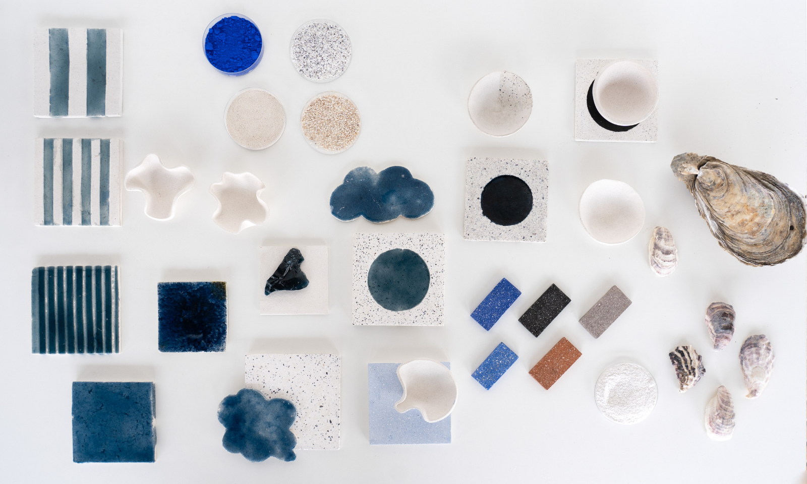 Of course, shells are also the mainstay of many sea creatures, including molluscs such as Oysters. Lisbon-based collective Fahrenheit 180 recognised that the bountiful by-product can also be transformed into a hard surface similar to ceramics, only without the intensive processing required during their manufacture. Their inherent pearlescent finish is homage to their origins, while also offering a unique finish, which can be coloured in an array of shades.