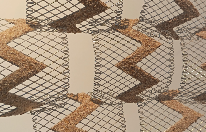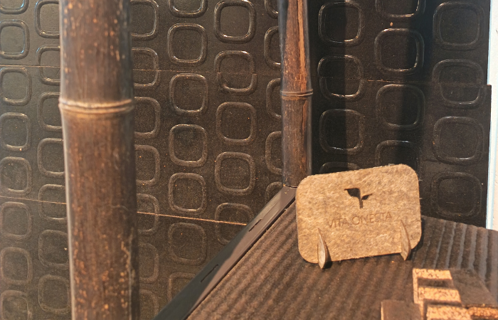 For designer Anna Eerdmans, cork has offered the perfect substrate for her experimentation with coffee grounds and hemp. A member of Barbara Chandler’s Green Grads, she launched Vita Onesta at the show, which is the culmination of a sustained period of development with these regenerative materials.