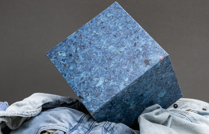 Proving that such material thinking is part of the current zeitgeist, young Designer Josh Myers has also been capitalising on the byproduct of one of our most beloved garments with the development of Denimolite. The composite board can be machined and joined like conventional panels, can is also available in blocks and brick formats.