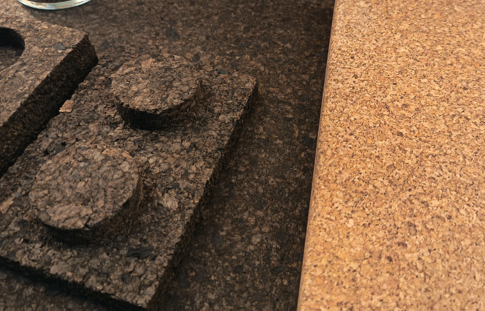 Much like glass, cork can be reconstituted or reused, even after it is granulated from its original virgin form. As a pure expansion of scale of the age-old process of creating moulded cork stoppers, Suberra is producing large-format cork panels at volume. Coming in a light and dark format, the product can be made in varying thicknesses, and its natural water repellency even makes it a viable surface for worktop applications.