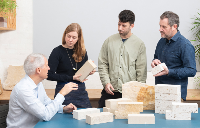 British stone suppliers Albion Stone and Hutton Stone have commissioned London-based architecture practice Artefact to design an installation on Clerkenwell Green, showcasing stone bricks which both companies are launching this year. Bricks made from natural stone have about a quarter of the embodied carbon than traditional clay bricks.