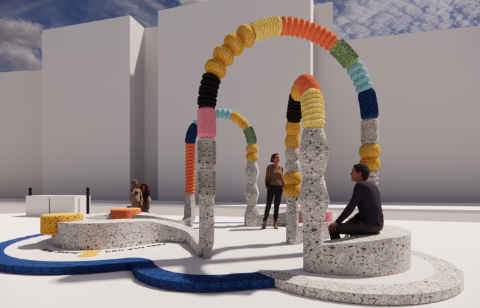One of the many Design Interventions selected for this year will be on Clerkenwell Green. The Fountain of Technicolour Beads (pictured above) has been created by Hong Kong-based multi-disciplinary studio One Bite Design. This immersive terrazzo installation integrates spatial design with social awareness by focusing on Colour Vision Deficiency (CVD).