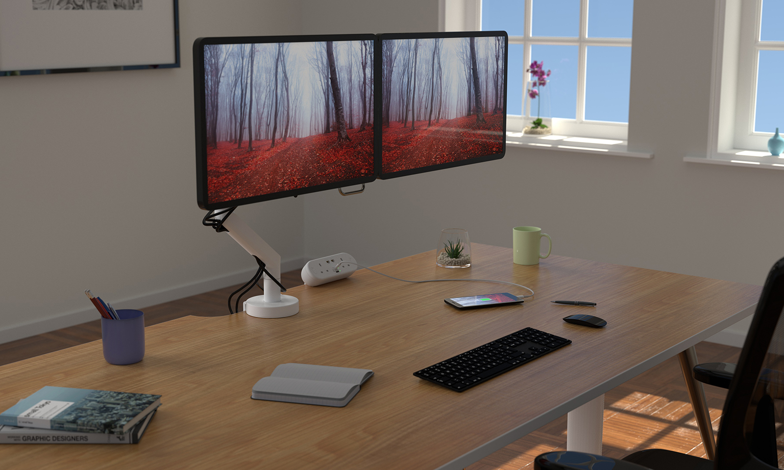 Available in single or dual screen options, the Reach Plus has been designed to provide an ideal solution for both single and dual screen workstation configurations, or can be used with next generation of large format curved screens. Suitable for a total combined screen weight of 6kg to 15kg, the Reach Plus monitor arm has been designed to allow two screens to be perfectly aligned side by side with no gap, maximising space at the workstation and enabling a neater, more aesthetically pleasing set-up.