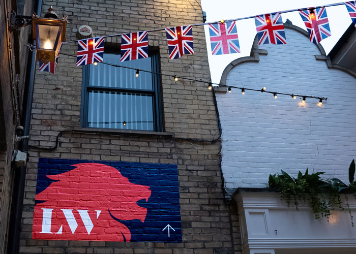 One of the main entry points into Lion Walk is via a beautiful timber framed outdoor walkway which runs through the Red Lion hotel, a fifteenth century Grade 1 listed coaching Inn. To highlight this entrance, f.r.a. created impactful signage featuring a new brand identity designed by DS Emotion and installed dramatic lighting that highlights its location, drawing people in as darkness fell.