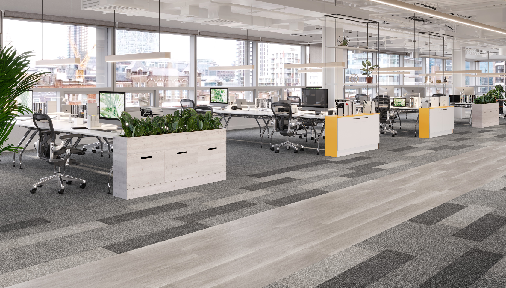 Colour Construct also combines effortlessly with Shaw Contract’s LVT collections. This means that different textures, designs and colours can be used to create walkways and distinctive zones, providing a simple way to configure spaces, that is also very flexible.