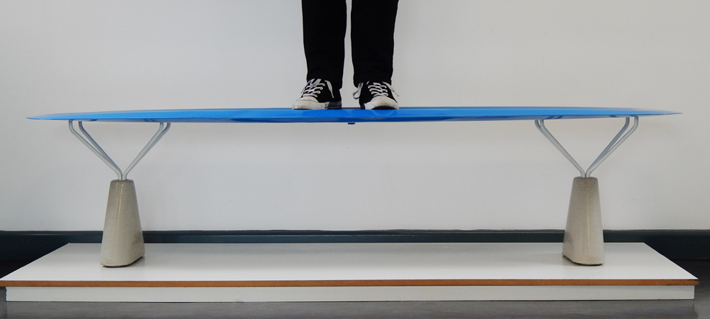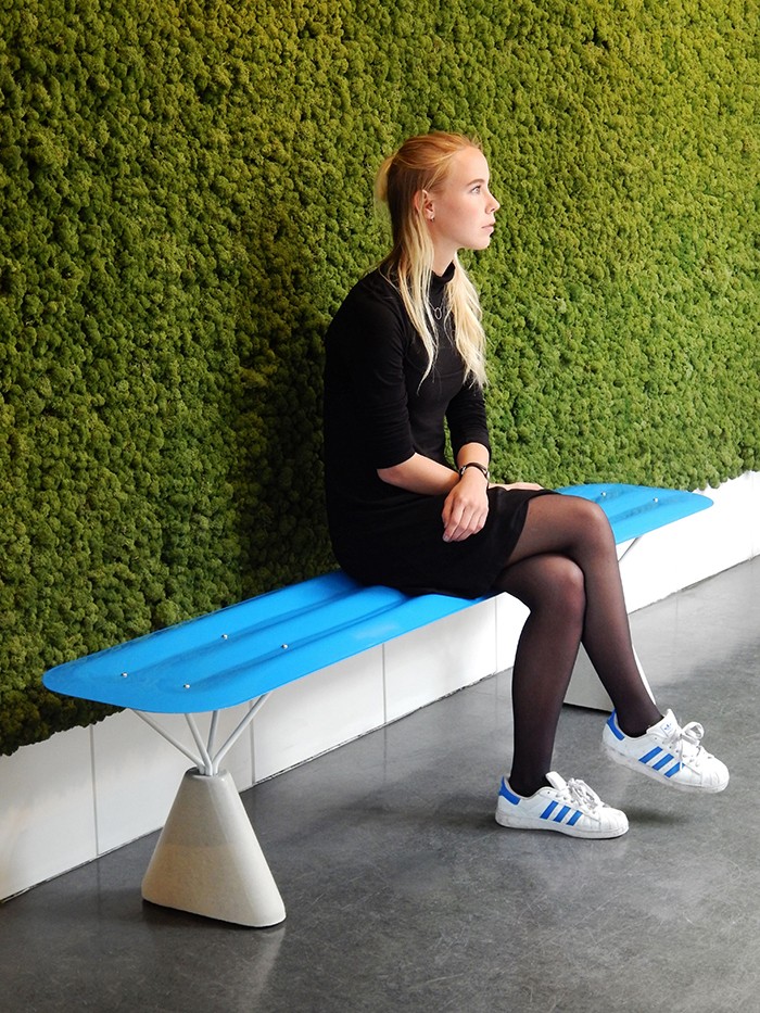 His ‘Lilo Bench’ demonstrates originality, innovative material exploration and fine craftsmanship. Using a homemade version of ‘hydroforming’, it appears to be pillowed, inflated and soft, akin to its namesake. Its robust structure provides strength and stability to support the mattress-like seat.