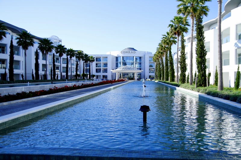 John Seifert’s (of Sigma Seifert) design of the Conrad Algarve was inspired by an 18th Century palace, with a grand entrance and driveway and metal gates. Two buildings flank the approach – and water features and lighting mark out the visitor’s arrival.