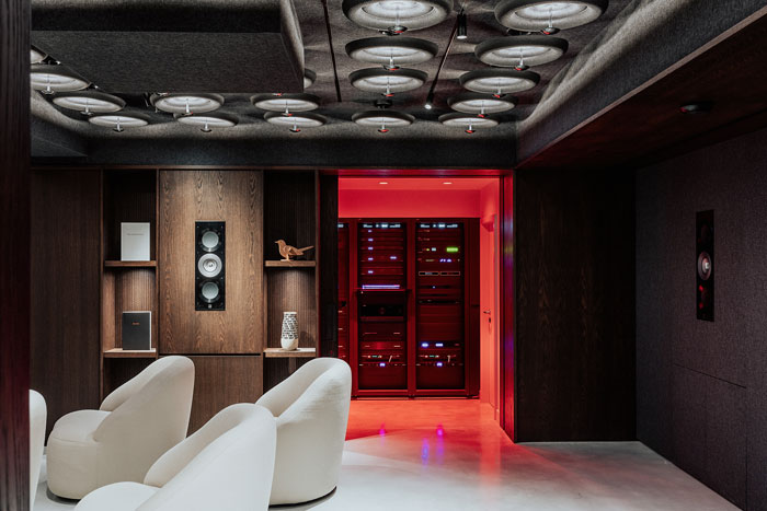 Adjacent to The Ultimate Experience Room, a technical space serving as the AV Rack Room, provides a behind-the-scenes glimpse into the technology that powers KEF’s products, with specific product exhibition spaces showcasing AV control systems and other components. Accessible to B2B customers, this space offers a hands-on experience that highlights KEF’s commitment to innovation and excellence.