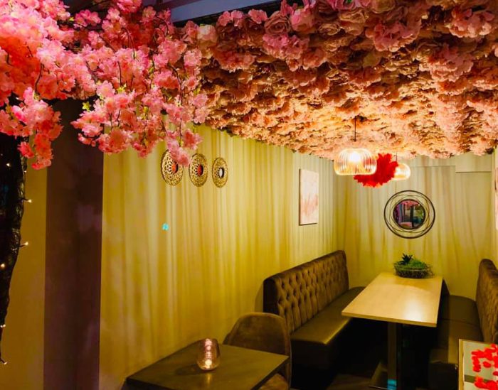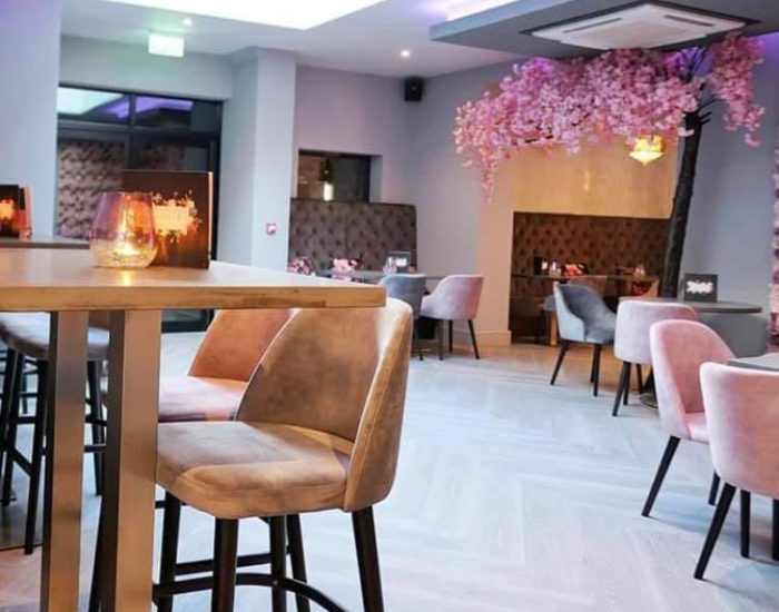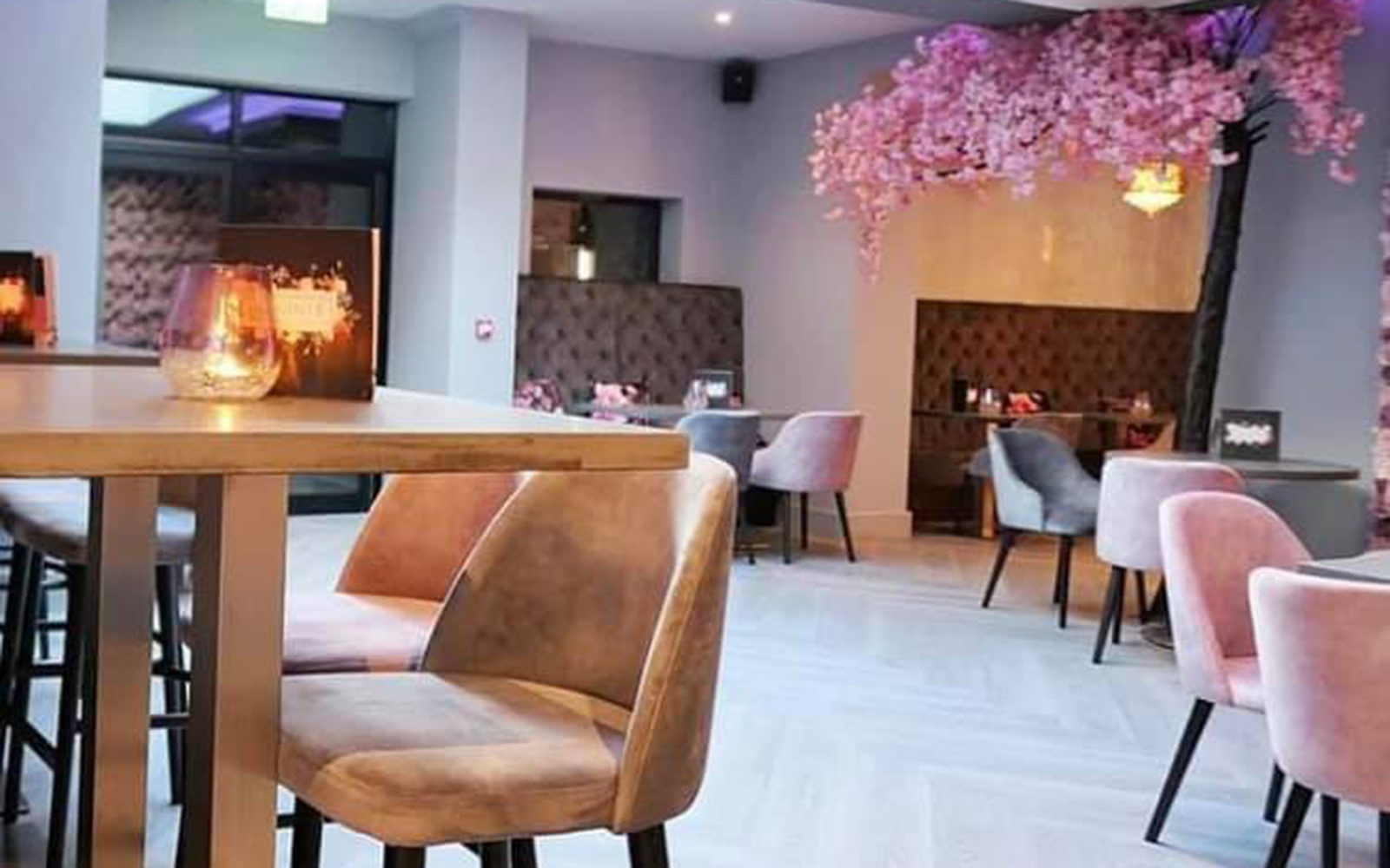 Leaving behind the old identity of the run-down hotel, Amante has undergone radical refurbishment to give the bar a completely new look and character. Inspired by the latest interior design trends, the bar boasts an aesthetically pleasing industrial look complemented by bright pink floral walls and artificial cherry blossoms trees. To make the design seamlessly flow throughout the venue, Contract Furniture Group filled the space with soft silver grey and pink furnishings. Light grey flooring was also installed to make the venue look chic and airy. The contrasting bright decors and minimalistic materials creates the perfect combination of boldness and elegance.