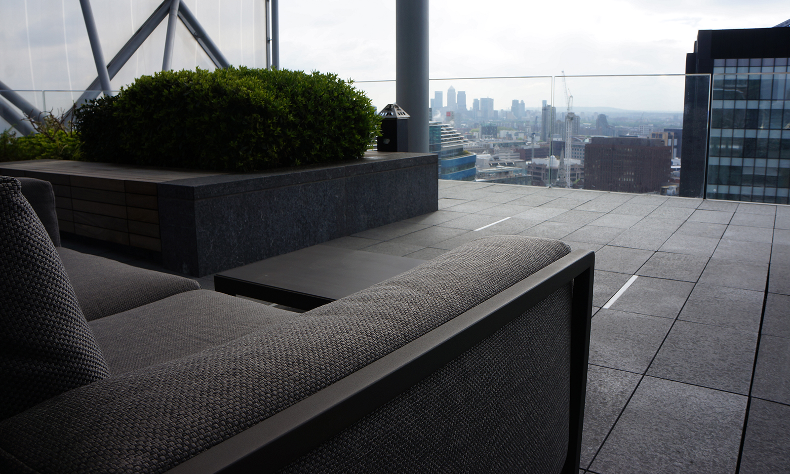 Working with Helix Properties, The Modern garden Company put together a suitable collection that would fit their client’s needs for a new roof top break out/function area in the heart of the City. The client wanted to transform the communal rooftop space to be more appealing to the companies renting office space in the building so that it could be used for events as well as day-to-day meetings.