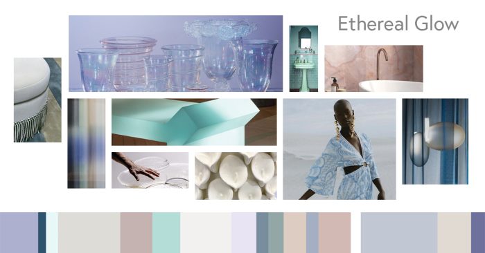 Light, delicate and serene, Ethereal Glow explores softness and simplicity through layered textures and subtle surface effects. This trend embraces transparency, gentle movement and refined finishes to create environments that feel uplifting and restorative.