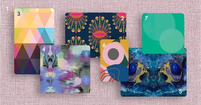 1. Bark VBK128 2, 2. Patternistas Weekend Midnight, 3. Geometrics Triangles Vibrant, 4. Get Arty Reflection, 5. Augustus Kotei Deep Dreams, and 6. Lois O’Hara Keep it Moving, and 7. 2LG Circles Green