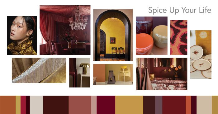 Bold, expressive and theatrical, Spice Up Your Life brings drama and energy to commercial interiors. Saturated colour, high-gloss finishes and rich materials create a sense of indulgence and opulence, perfect for spaces designed to captivate and invigorate.