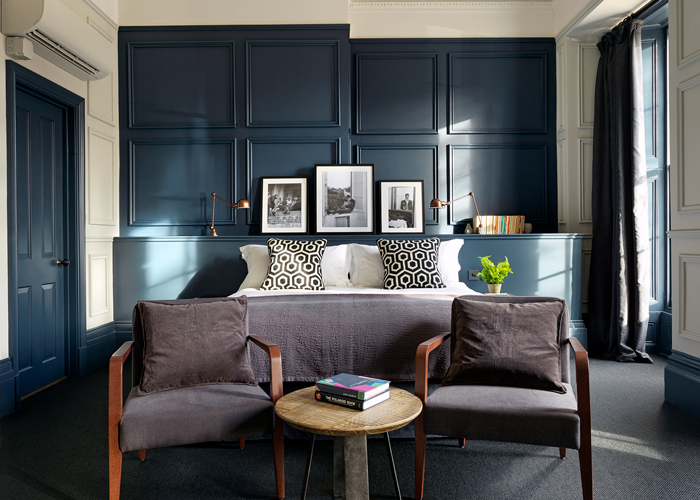 The quality of the refurbishment is impressive, all the rooms feature top of the range Hypnos beds, epic showers, and super-fast WiFi. A moody palette of deep blues and greys, brightly tiled bathrooms and a selection of Penguin paperback classics at each bedside all add to the boutique vibe.