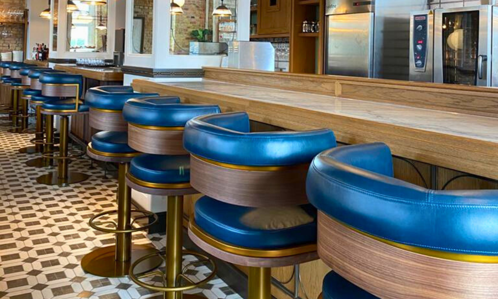 We must remember to consider all the bar and counter stools that have no backs. These tend to feel more informal but you can still create a unique piece of furniture which captures your perfect look. A recent example is the fixed stools for Audrey’s. These types of stools can be a great space saving solution, offering informal seating for busy venue’s.