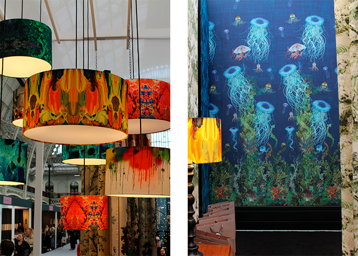 Timorous Beasties were also showing their fabulous new designs, including foil wallcoverings – one of the most eye catching of which was their new Jellyfish foil wallpaper panel.
