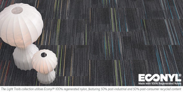 From our metallic trends 2018 post, Milliken informed us that their designers have started to use ECONYL yarn, made from 100% regenerated fibre.