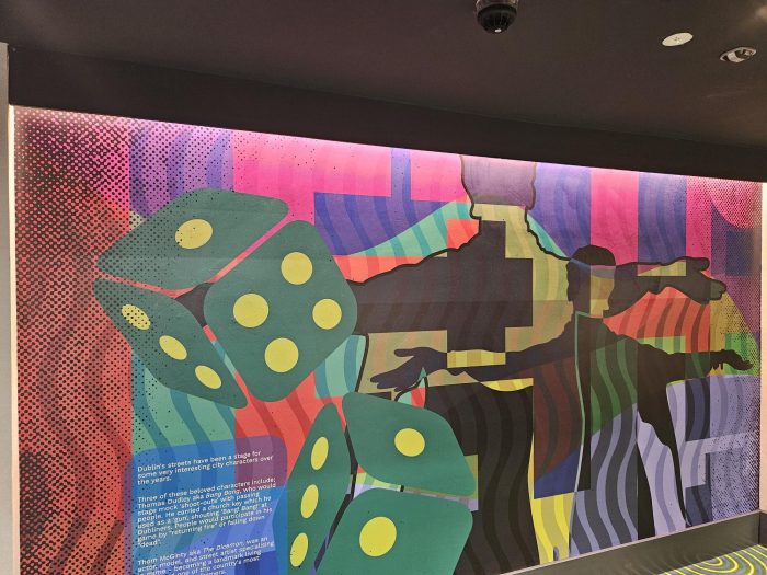 What makes this piece particularly effective is its ability to combine storytelling and visual energy in a way that is both contemporary and site-specific. The bold colour palette, layered patterns, and figurative outlines evoke movement, community, and history—all essential elements of Dublin’s identity. Through this installation, Spires Art transformed an ordinary hallway into an immersive cultural encounter, using design as a medium to celebrate the spirit of the city.