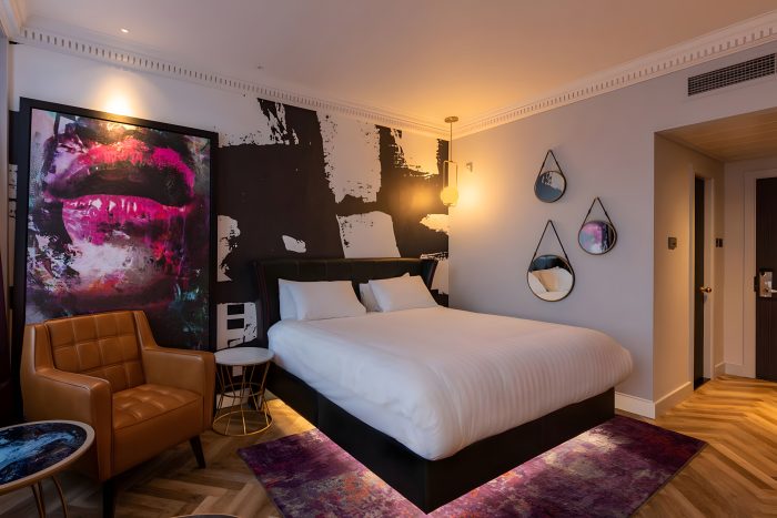 At the standout NYX Hotel London, art is everywhere, shaping the vibrant, youthful personality of the space. This partnership produced neon-lit mirrors, vivid pop-art portraits, and captivating wall art evoking an eclectic energy, perfect for its millennial and Gen Z clientele. This art isn’t there to blend into the background—it’s a statement. It is the identity.