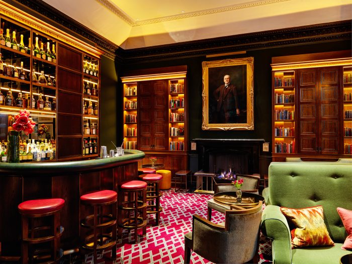 Crafting a Brand Story Through Layered Design: The most compelling spaces tell stories through layers, combining artwork, wallpaper, and mirrors into a harmonious design narrative. Classic hotel interiors, library bar decor, heritage-inspired art, bespoke framed artwork, luxury storytelling.