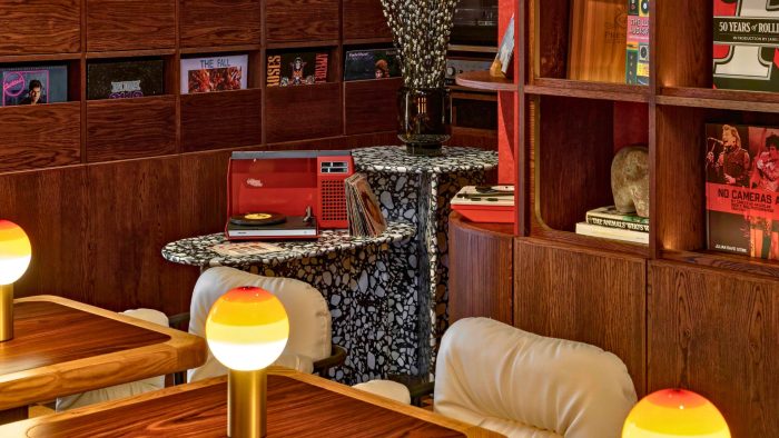 A feast for the eyes—and the perfect spot for eating, drinking, and laughing with friends. With Shoreditch chairs, Rocksteady tables, and walls of vinyl, this space serves up serious style with a side of good times.
