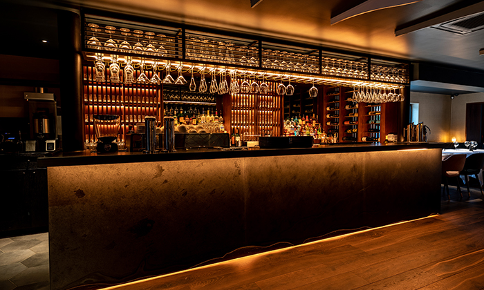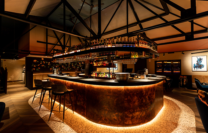 In the evening, the space transitions into a sumptuous cocktail bar serving speciality spirits, craft beers, sake and cocktails. Rich materials coupled with a ‘dusk sky’ ceiling and stunning art installations create an intoxicating and exciting ambience for guests.