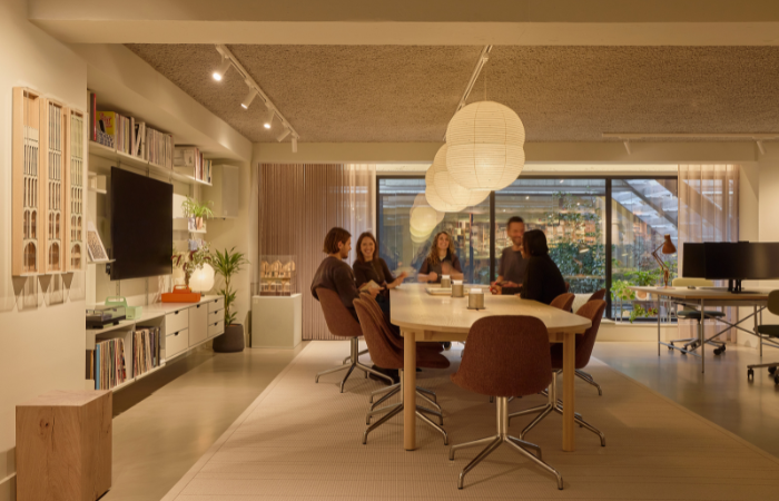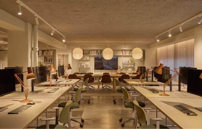 Demountable Egon Eiermann desks (designed in 1953) show the power of classic, enduring design, and pair with HÅG Tion task chairs designed by Anderssen & Voll, BIG-GAME, and Hunting & Narud, which were lauded the ‘most sustainable on the market’ by DAMN magazine in 2022 – made from 75% recycled materials and designed for full disassembly.