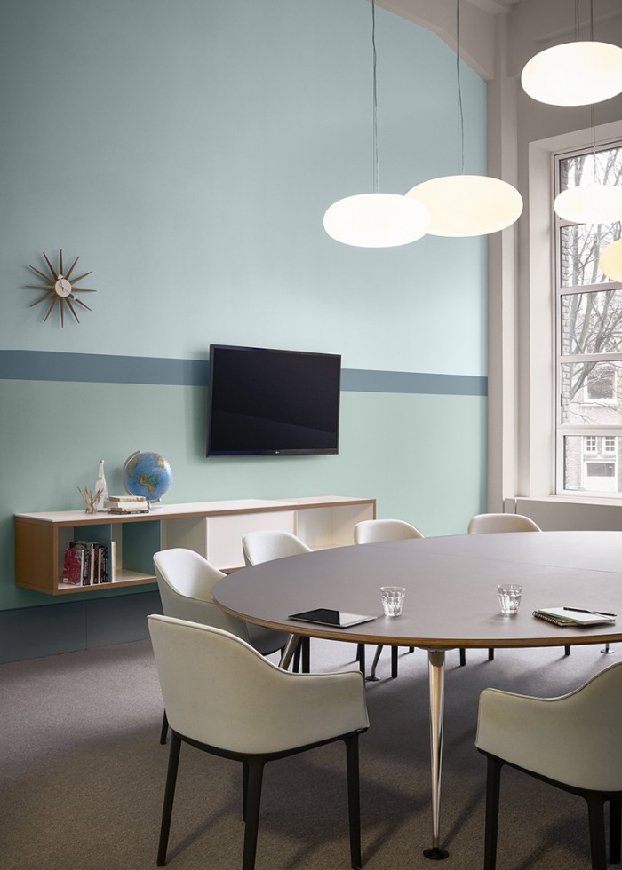 The Inviting Space offers cool shades of blue that are supported by sea green and pale neutrals at each end of the spectrum. With Heart Wood creating a subtle contrast right in the middle of the mix this palette helps to create easy going environments that foster clear-headed thinking. Developed with the healthcare sector in mind this palette allows for proportions of coloured surfaces to be utilised to indicate the purpose of a room, or to signal a transition to a different area.