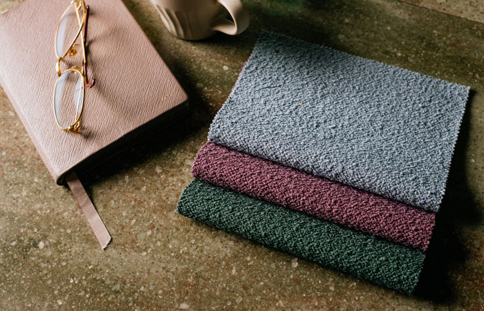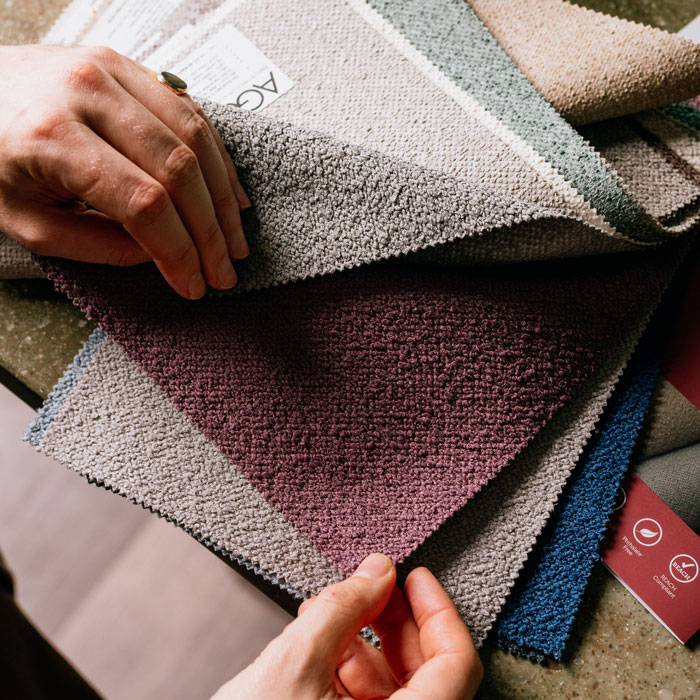 And then there’s Bouclé, with its signature looped, curly yarns. This is a collection Agua have been working on for over a year, and it required careful tweaking and testing to get right. First, they had to get the look right – Bouclé weave had to do the age-old fabric justice. But, they also wanted to develop a fabric that performed in-line with all our other staples. This isn’t about style over substance. Many bouclé fabrics wear too quickly, and don’t stand up to the rigorous needs of the contract environment.