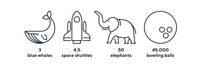 - In 2020 alone, we locally coated enough fabric to cover the length of more than 9,523 football pitches, saving over 350 tonnes on our carbon footprint! 350 tonnes – that’s approximately 3 blue whales, 4.5 space shuttles, 50 elephants, 700 grand pianos, or 45,000 bowling balls.