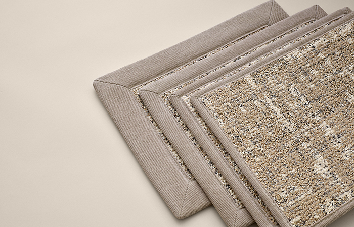 Available with 30 overlock yarns, 20 border options (in leather, cotton, structure-woven fabrics and suede imitation) as well as blind binding and cut options, finishing is the final decision to make. And, voilà: Your tailored carpet is on its way to your floor!
