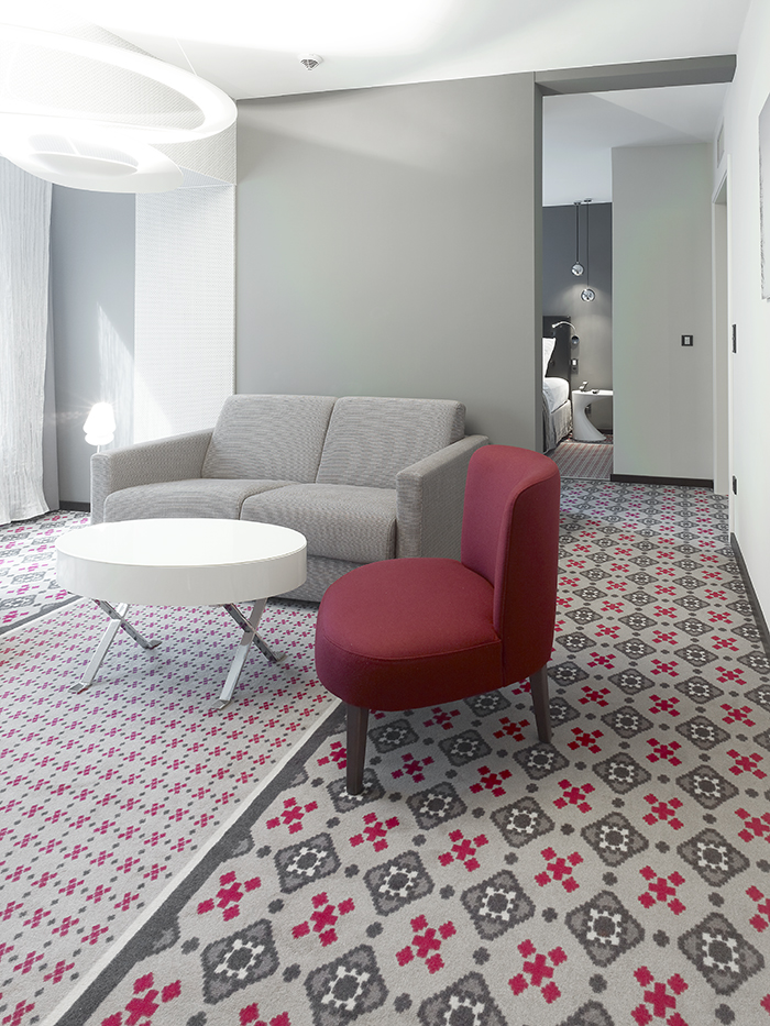 Located in the small town of Clervaux in Luxembourg, the ‘le Clervaux Boutique & Design Hotel’ offers its guests a visual experience through the extensively patterned floor coverings installed throughout the communal (restaurant and hallways) and private spaces provided by ege carpets.
