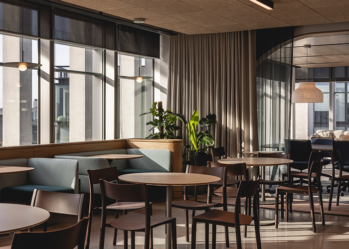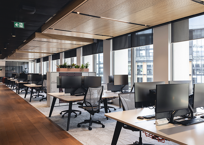 The new workplace needed to house more than 200 employees at 156 workstation desks, with agile work-from-home (WFH) options taken on board, as well as the provision of a variety of non-workstation spaces, from informal collaboration and breakaway settings to an on-site restaurant and an external terrace space. The new scheme also had to incorporate a reception area, a variety of VC-enabled meeting rooms, plus dedicated washrooms and shower facilities.