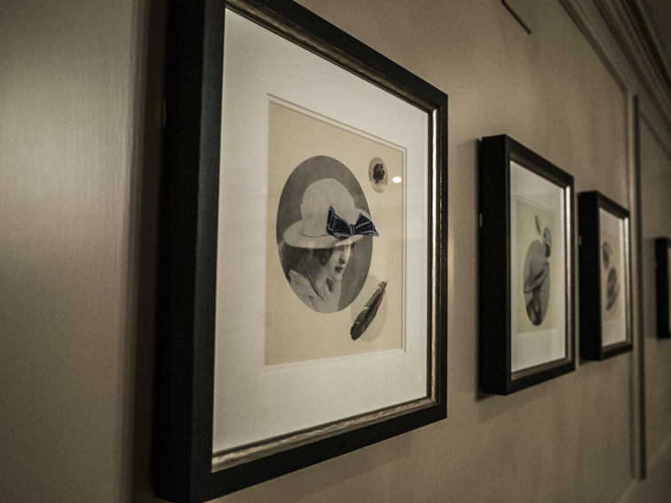 The framed artworks include Vintage Illustrations of Ladies Hats which reference Ladies Day at the Races.