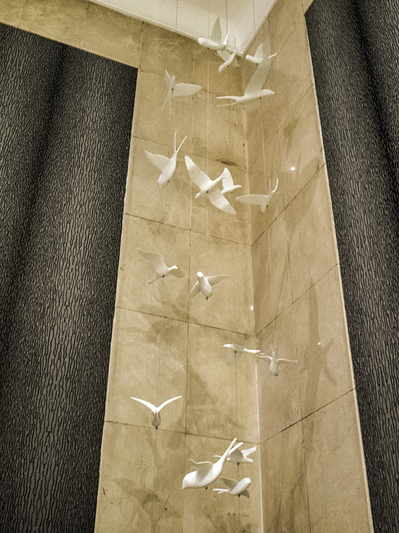 All components of the suspended bird sculpture were hand made by Elegant Clutter’s team.